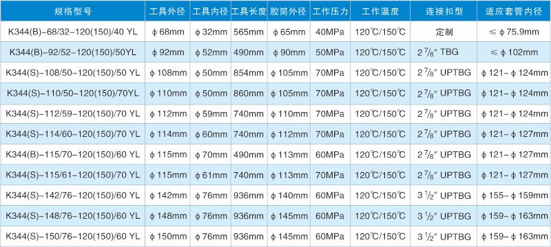* 注:非以上型號(hào)封隔器,我公司可進(jìn)行另行開發(fā)。所有工具連接扣型為出廠預(yù)制,如需特殊扣型,可另行加工定制。