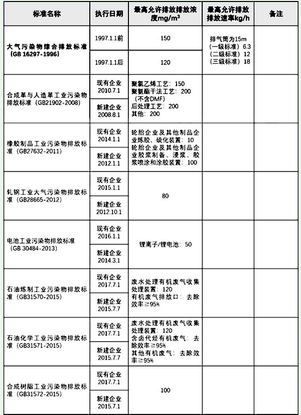 國家VOCs有機廢氣排放標準